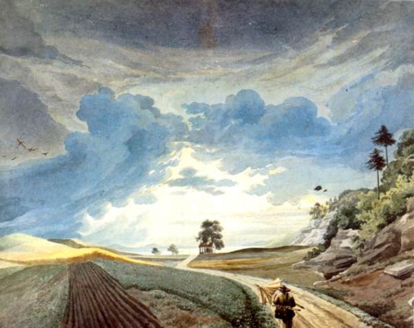 Gewitterstimmung, Aquarell von Gottfried Keller (1842) |